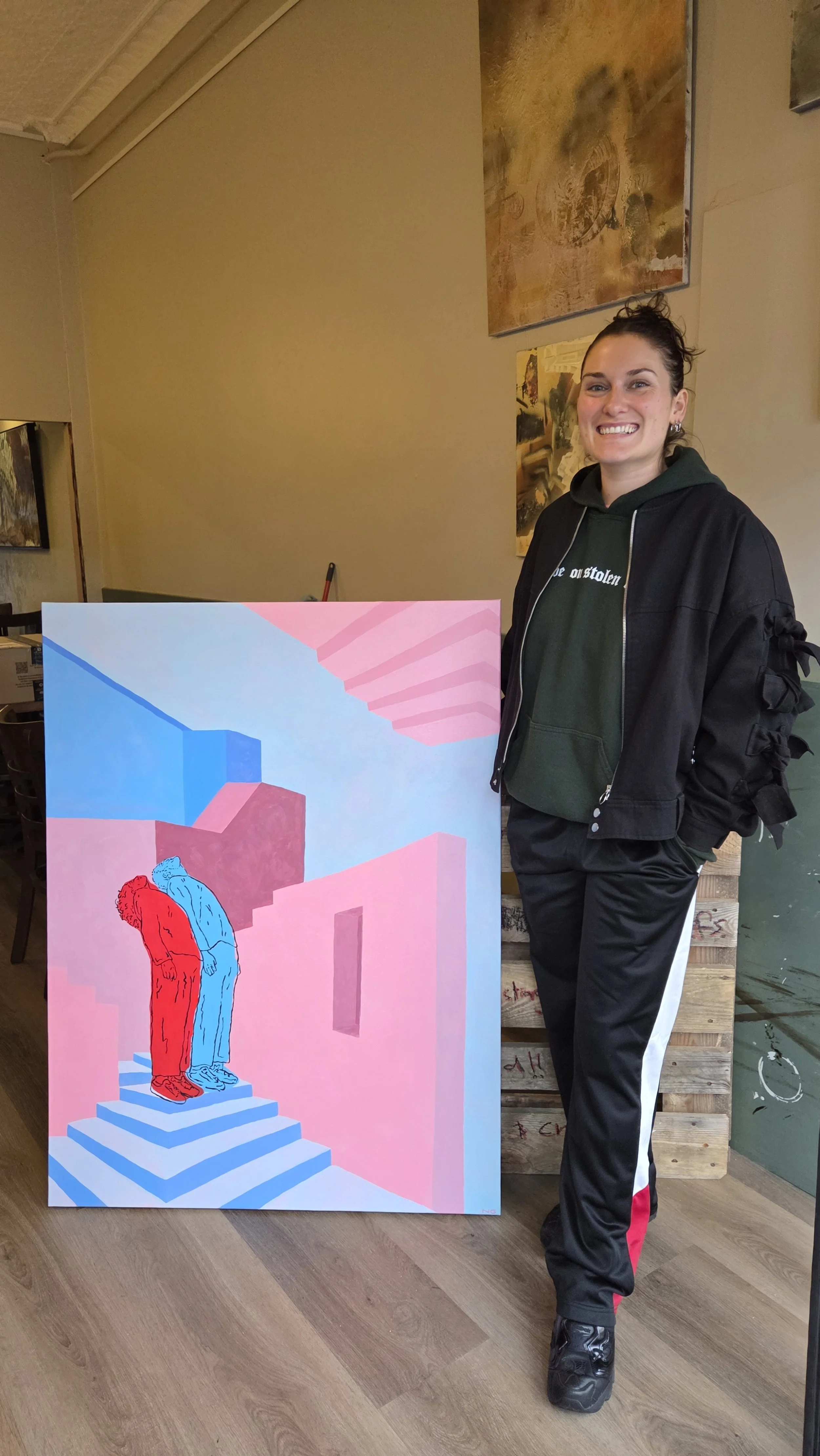 Nicki Gordon is a local Newtown artist, working under the name Organised Mess. Nicki’s work plays with the space between control and chaos. Influenced by modernist architecture, surrealism and introspection, her work holds a quiet tension, where things feel like they might fall in on themselves, but don't.
